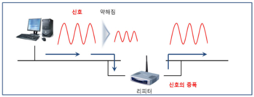 - 신호의 증폭/재생(정형=일그러진 전기신호 원래로 복구), 단순 송신