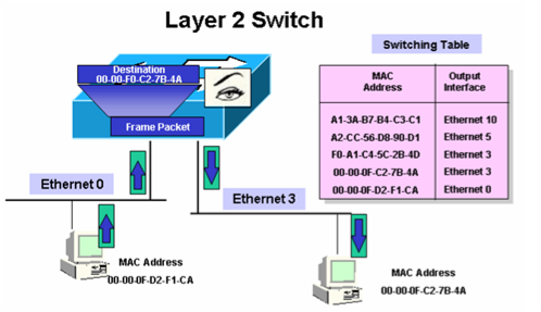 - 수신 프레임의 목적지 MAC 주소와 동일한 것을 MAC 테이블에서 찾아내어, 해당 출력 포트로 프레임 전달