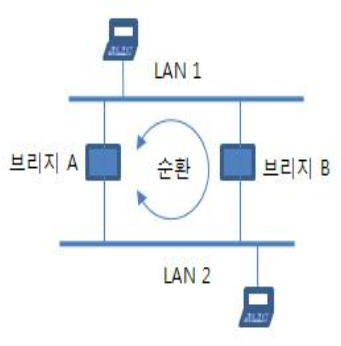 - 브리지 루프 (또는 스위칭 루프): LAN에서 프레임이 끝없이 순환을 일으키는 현상을 말함