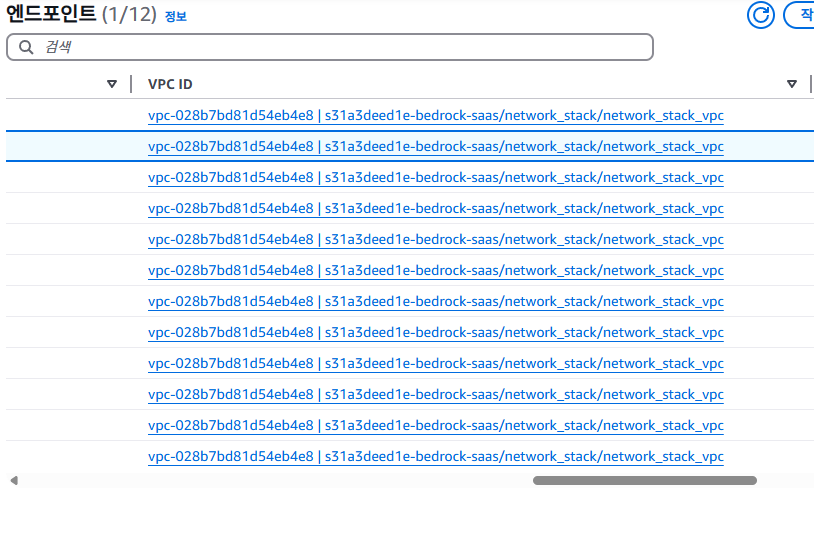 그림 3의 해당 lambda 함수의 구성을 보면, 소속 vpc가 그림 4의 endpoint 들의 vpc들과 같은 공간에 세팅되어있을 확인할 수 있다.
