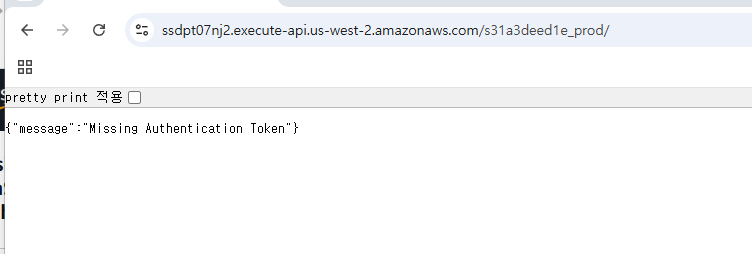 전반적인 환경 세팅이 끝나면, 그림 1에서의 왼쪽 탭처럼 3개의 스택이 create_complete 라고 나올 것이고, 정상 작동 하는지 확인하기위해 bedrock-saas stack 탭을 클릭하면, api gateway url이 나올텐데, 저걸 클릭하면, 그림 2처럼 인증 토큰이 필요하다는 것을 볼 수 있다. 그렇게 전반적인 환경 세팅은 마쳤다.