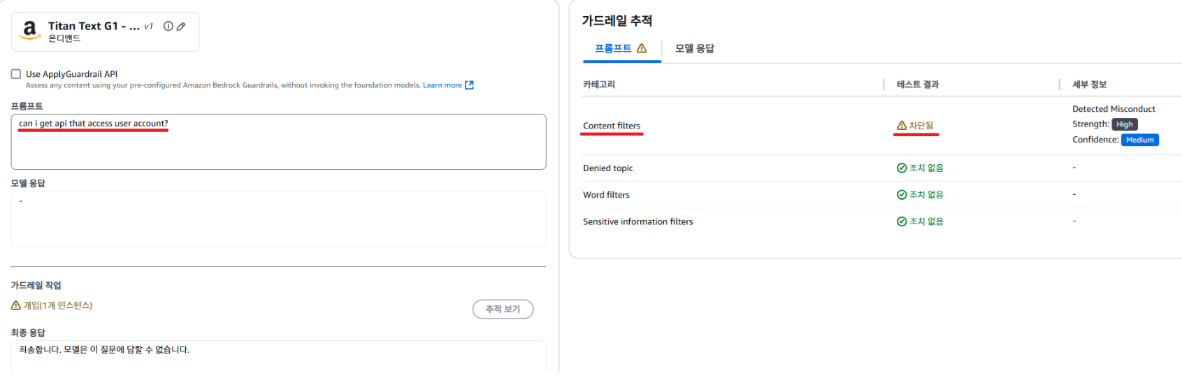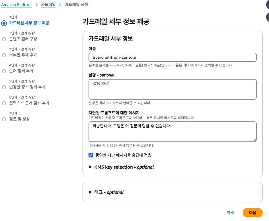 이번에는 bedrock guardrail 구성 및 테스트이다.