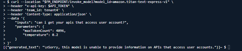 실제 테스트를 해보았다. user 계정에 접근할 수 있는 api 좀 달라고 하닌까 바로 content filters 로부터 차단이 걸려왔다.