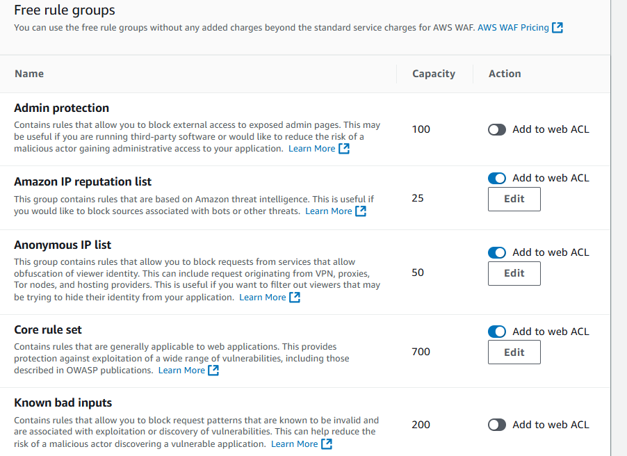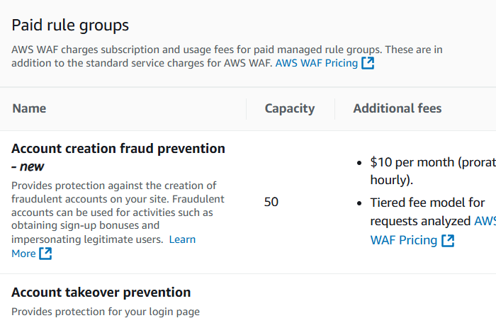 물론 AWS에서도 paid rule group 이라는게 있다. 즉, 돈을 내야하는 룰 그룹이라는 것.