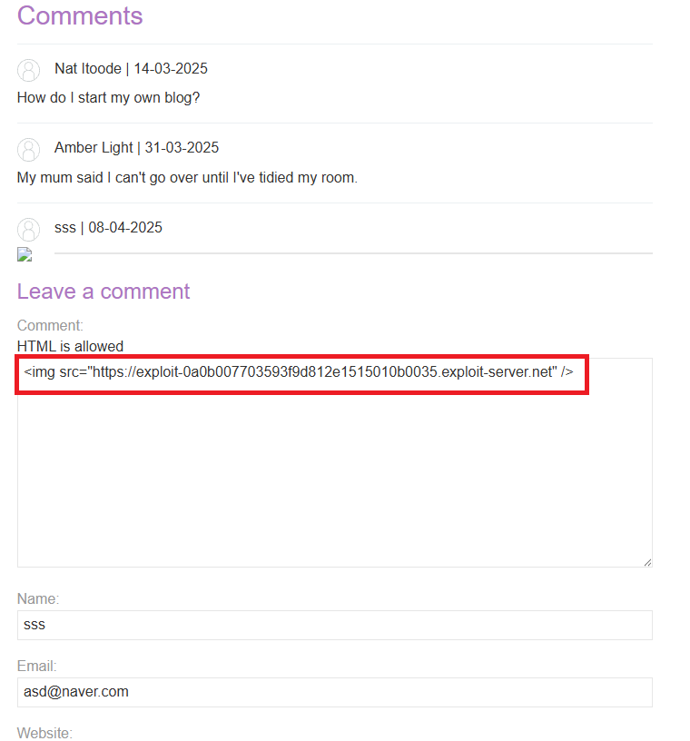 일단 사람들이 종종 이용하는 포스트에 댓글을 위와 같이 남겼다. 이미지 주소를 남기면, 해당 이미지를 요청하기위해 해당 서버 즉, 나의 악성 사이트에 요청을 한다. 그 요청한 사용자의 브라우저 종류를 보기 위해서 저렇게 남긴것이다.