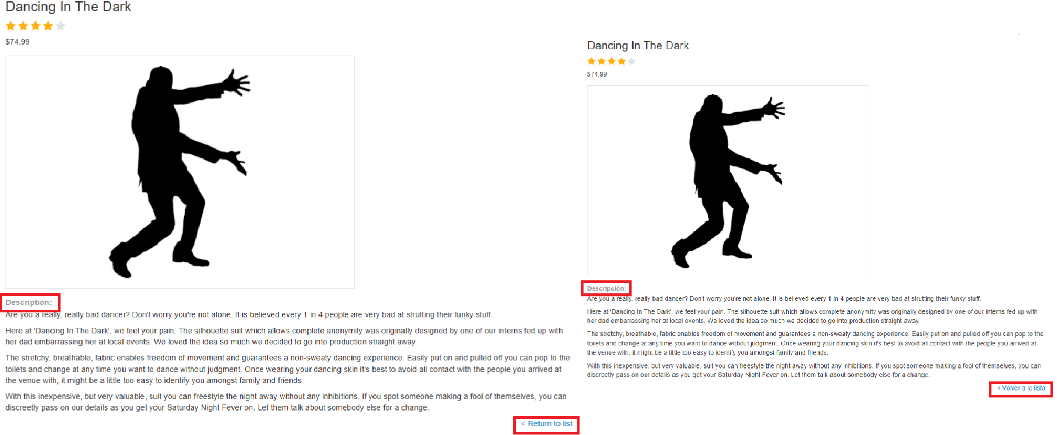 "Return to list", "Description" 이라는 부분 또한 스페인어로 바뀐 것을 볼 수있다.
