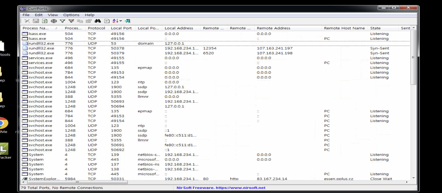 - 시스템에서는 netstat 명령으로 열린 포트를 확인할 수 있는데, 일반 시스템에서 사용하는 포트가 그리 많지 않아 주의해서 살펴보면 백도어가 사용하는 포트를 쉽게 확인가능