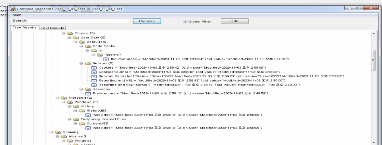 - 파일 내용이 조금만 바뀌어도 해시 결과 값이 다르기 때문에 관리자는 주요 파일의 MD5값을 주기적으로 수집하고 검사하여 변경되는 파일 내역을 확인 필요.