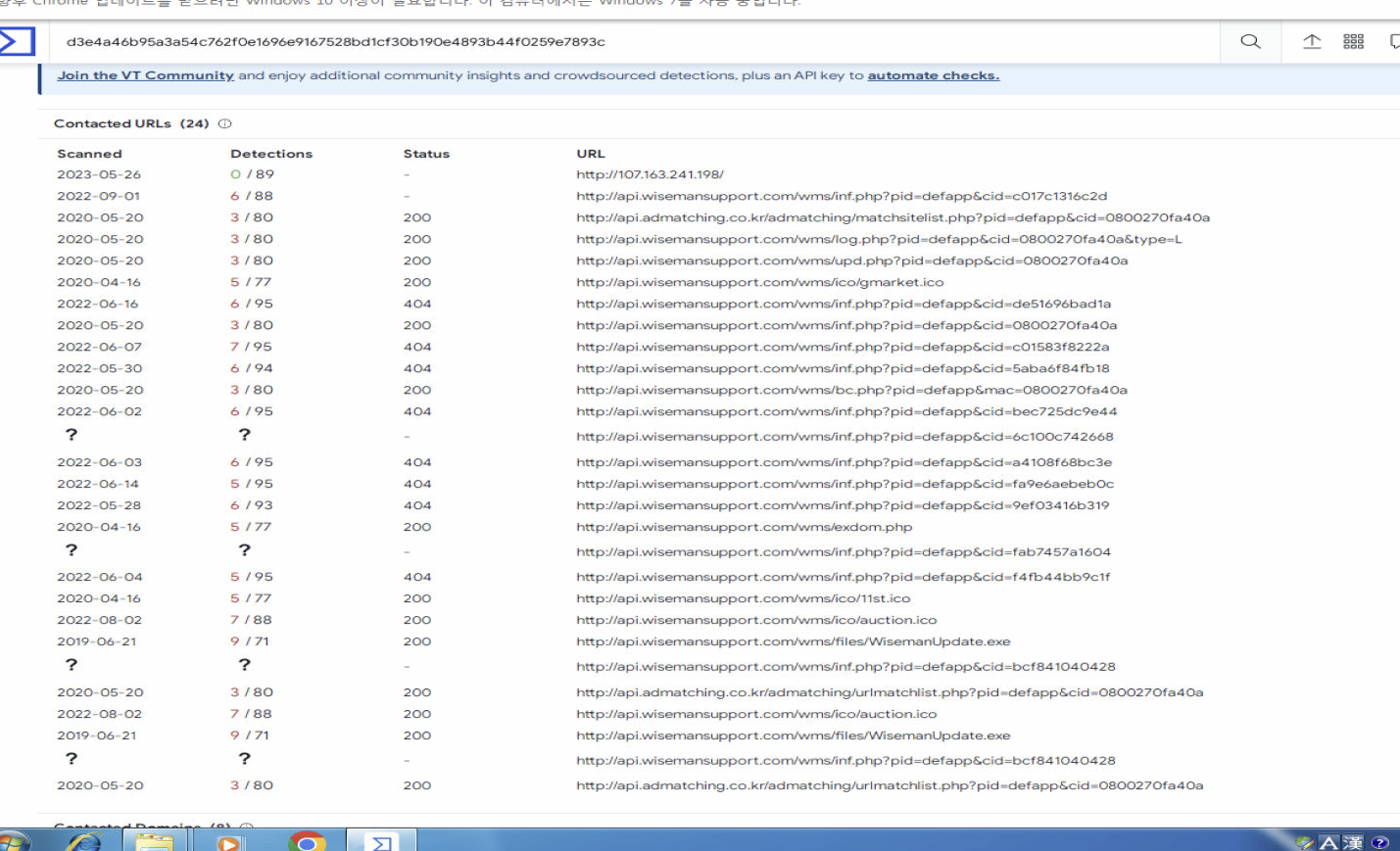 - 90개의 백신 중 10개의 백신이 악성 사이트로 진단