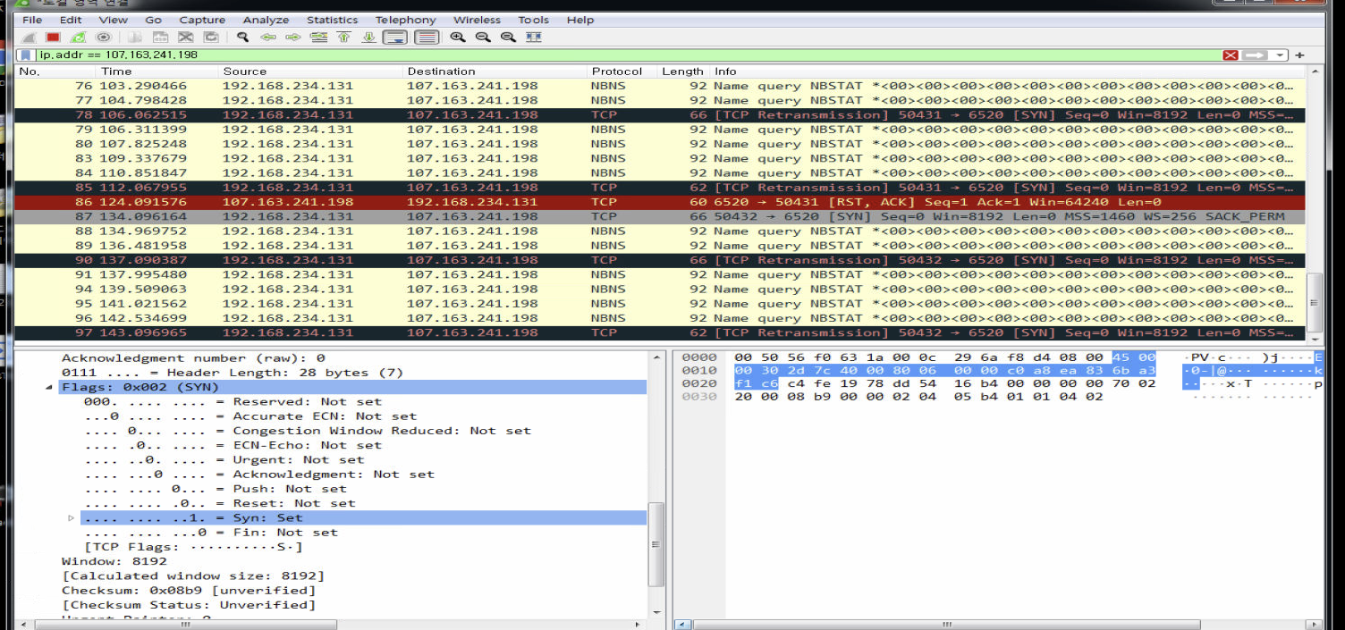 - 이를 통해 악성코드가 107.163.241.197/198과 통신할려고 하는 것으로 필히 추정
