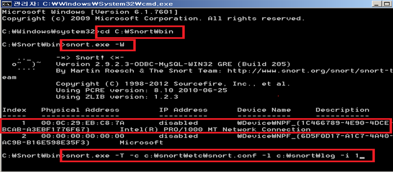- 특수문자 입력시 snort.conf 파일 검증시 에러가 뜨니 주의