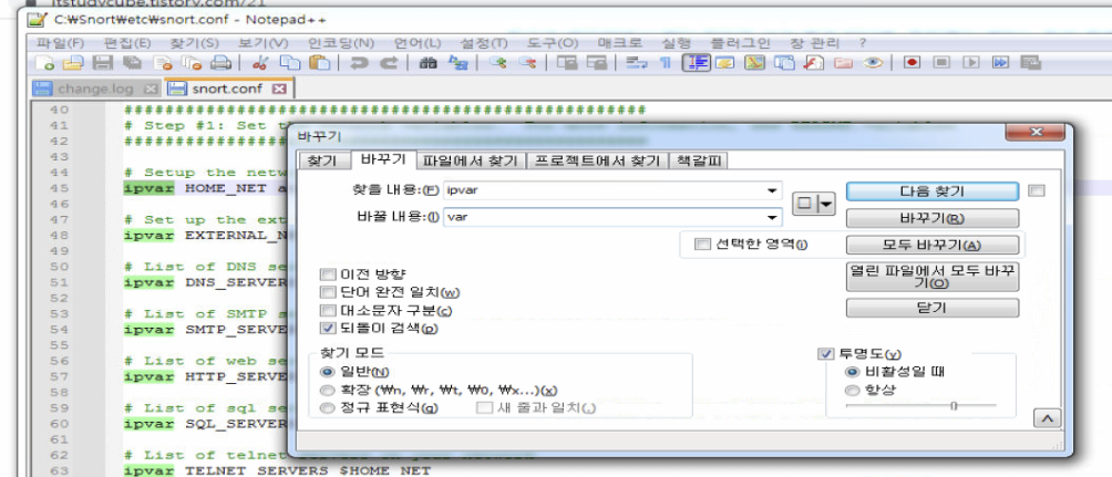 - Notepad++가 있어야 snort.conf 수정이라든가 snort.rule 생성등을 할 수가 있음