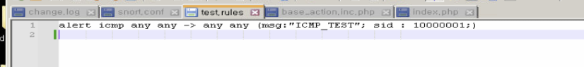 - 이때, test.rule 파일을 통해 ICMP 패킷을 탐지하도록함.