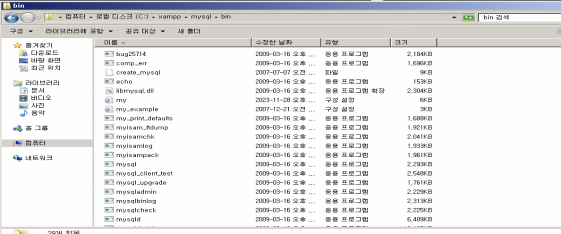 - XAMPP 설치 후 MYSQL 초기 비번이 설정되어 있지 않기에 화면에 보이는 명령어를 통해 비번 설정을 해야함.