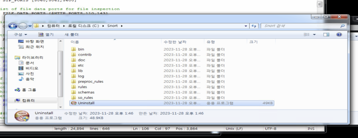 - snort 설정 파일이 애초에 리눅스에 맞게 설정되어 있어서 윈도우에 맞게 설정해줘야함