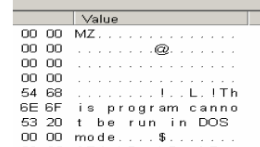 MZ를 통해 실행파일임을, This program cannot be run in DOS mode 라는 것을 통해 윈도우 파일임을 확인할 수 있다.