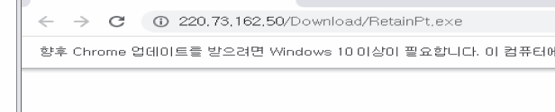 세번째 접속 사이트는 220.73.162.50이며, 해당 URL에 접속하였더니 마지막 파일인 RetainPt 라는 파일을 다운로드하였다. 결국 모두 3개의 파일들을 다운 받은 것으로 확인 됐다. 2번째 파일까지는 실행시켜도 큰 반응은 나타나지 않았다. 그러나 3번째 파일인 RetainPt.exe을 실행시키자 다음 아래와 같은 상황이 나타났다.