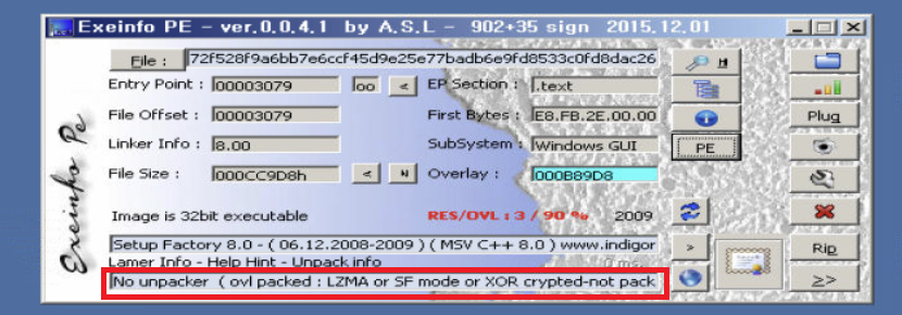 *패킹: 코드 제작자가 자신의 코드를 타인에게 노출시키지 않기위해 코드를 난독화처리하는 행위를 말한다. 그래서 보통 언패킹 툴을 이용하여 패킹을 푸는 것이 일반적이며, 이를 위해 먼저 패킹 처리가 되어있는지 확인해보기 위해 사용하는 툴이 Exeinfo 혹은 PEinfo이다.