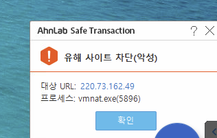 그림 5를 보면, 호스트 OS의 Ahnlab safe transaction 프로그램에서 악성 유해 사이트라며, 차단 당한 것을 확인해 볼 수 있다. RetainPt.exe는 220.73.162.49 라는 사이트와 통신을 돕기위한 통신 프로그램으로 보인다. 더 자세히 알아보기위해 그림 6과 같이, safe transaction 프로그램의 차단 로그 기록을 확인하였다.
