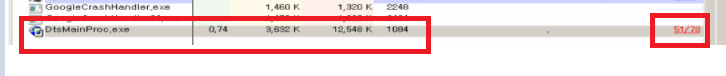 또 시간이 한참 흐른 뒤, DtrMainProc.exe라는 프로세스도 나타났다 나아가 해당 프로세스의 TCP 연결을 확인해보면 앞서 기초분석에서 봐왔던 IP가 보인다. 그리고 virustotal 탭을 보면, 78개의 백신 엔진 중 51개의 백신 엔진이 악성코드가 진단하였다.