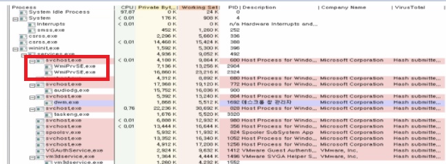 실행시키자마자 svchost process 하위단에 winPvcSE.exe 프로세스가 실행되었다.