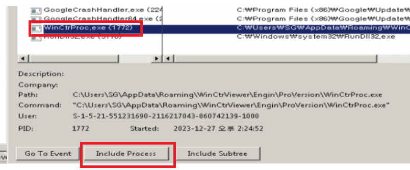 시간이 지난 뒤, winctrCon이라는 프로세스도 생성되었다.