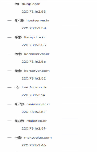 통신하는 사이트들이 거의 대부분 http 프로토콜을 활용하며, 220.73 대역 IP를 사용한다. 추후 네트워크 통신 분석시 참고할만한 요소이다.