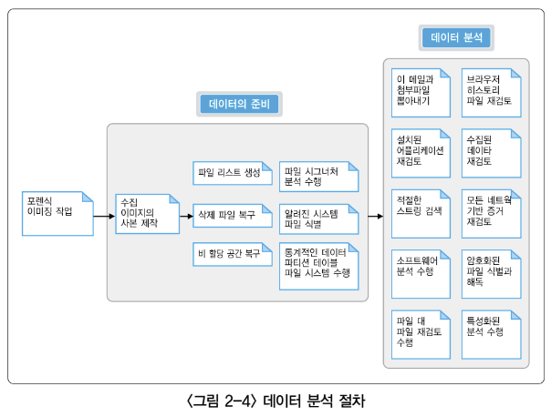 나아가 데이터 수집에는 호스트 기반과 네트워크 기반 증거로 나누어 조사한다.