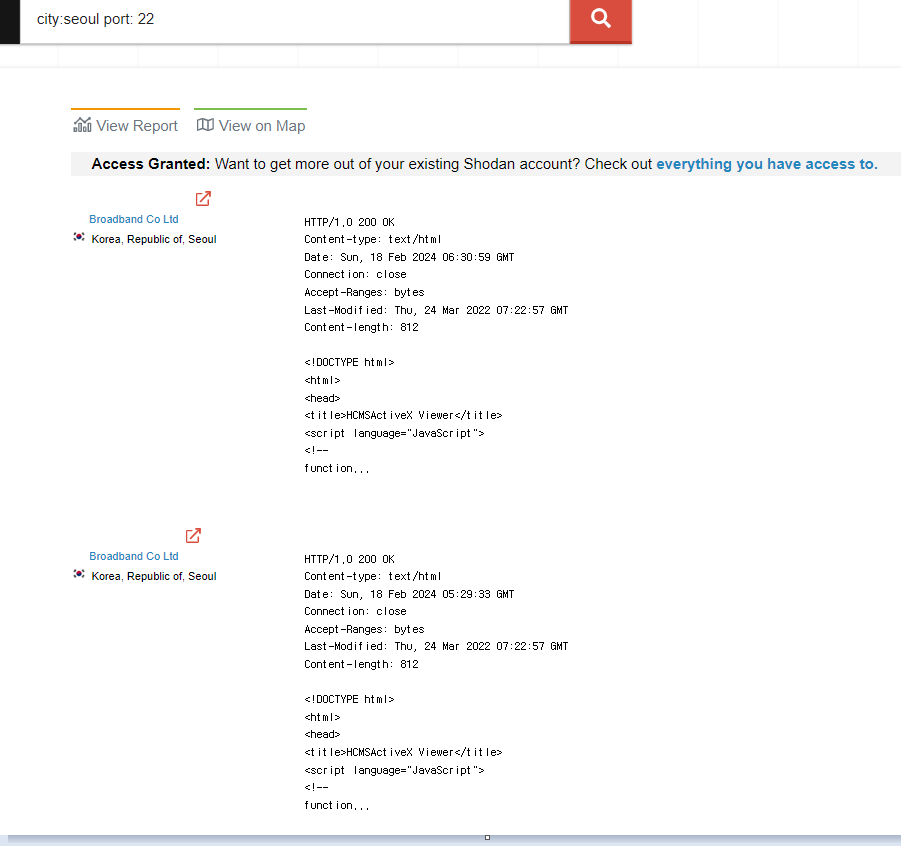 - ※ 하지만 Shodan은 누구나 사용할 수 있고, 민감한 정보를 쿼리할 수도 있기에 사이버 범죄 등 불법적인 일에 사용되는 경우도 많이 발생한다. 그렇기 때문에 윤리적인 책임감을 가지고 사용을 해야한다.