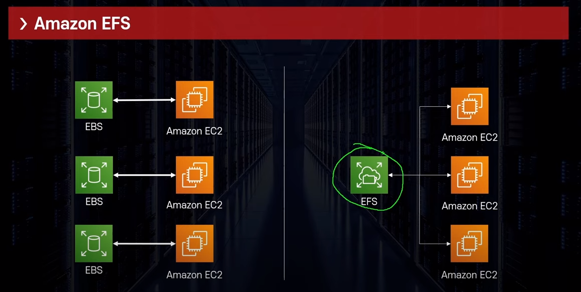 - 따로 용량을 지정할 필용없이 사용한 만큼 용량이 증가 < > EBS는 미리 크기를 지정해야함
