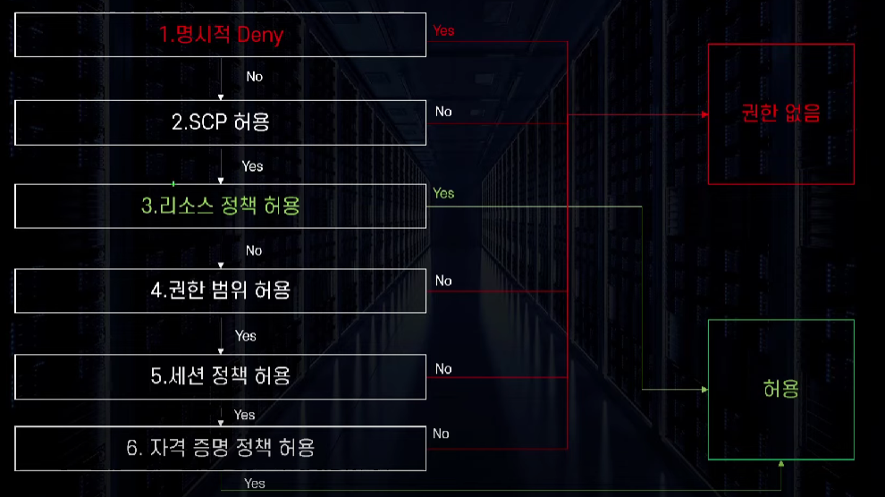 - 리소스 정책 허용이면 밑에는 검사하지 않고 바로 권한 허용