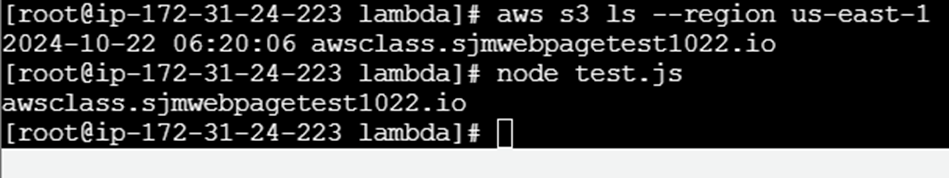 - node test.js: 그로 인해 ec2 서버안에서 실행되는 node.js 어플리케이션도 s3 접근하여 내용물을 나열할 수 있는 것도 확인해볼 수 있다.
