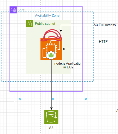 - node.js 어플리케이션이 S3 버킷의 내용물을 확인할 수 있도록 IAM 역할(S3FullAccess) 권한을 생성하여 EC2 서버에 연동시켰다.