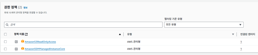 - EC2가 S3 이용시 파일 조회만 하면되기 때문에, 최소 권한 원칙을 지키고자 AmazonS3ReadOnlyAccess 역할을 EC2 서버에게 부여하였다.