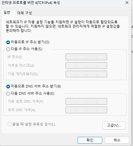 그런데 보통 사람들은 PC를 사용하면서 이런 설정을 해본 기억이 있지는 않을 것이다. 그러나 실제로 네트워크 서비스 안내를 하다보면, 저 화면 서비스 안내를 지겹도록 할 것이다. 실제로 내가 공군 CERT 병으로 복무할 당시, 사용자분들에게서 네트워크 설정 안내 전화를 많이 받아봤다. IP는 제대로 설정했지만, DNS 서버 주소를 잘못 입력하셔서 안되시는 분들이 종종 계셨다.
